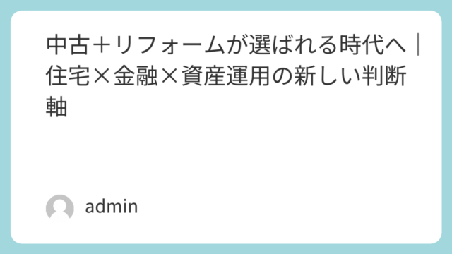 中古住宅リフォームが選ばれる理由を、建築基準法改定・物流問題・住宅ローン金利上昇の視点から解説。不動産×資産運用の新しい判断軸を教育型コラムで整理。
