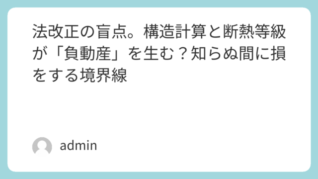 データ分析と事例研究 法改正の盲点。構造計算と断熱等級が「負動産」を生む?知らぬ間に損をする境界線