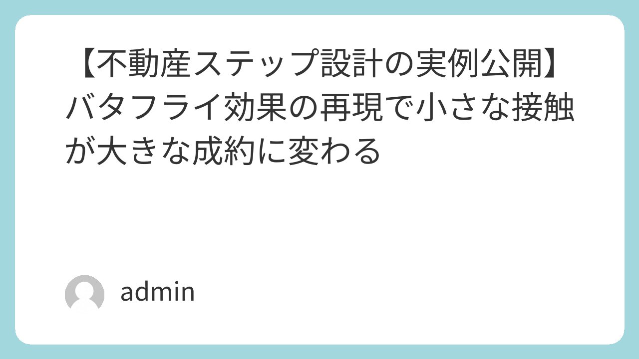 【バタフライ効果の再現】小さな接触が大きな成約に変わる“不動産ステップ設計”の実例公開