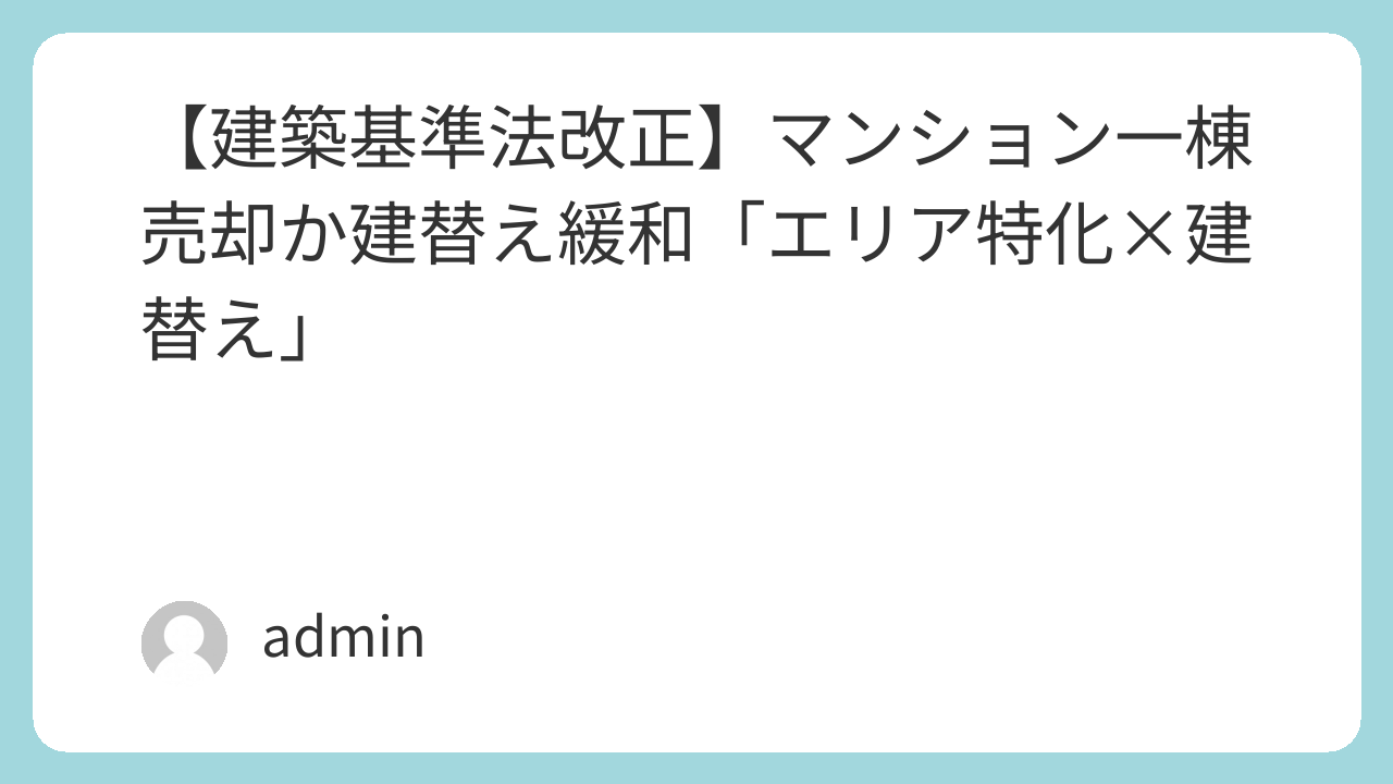 【建築基準法改正】マンション一棟売却か建替え緩和「エリア特化×建替え」