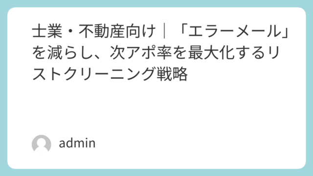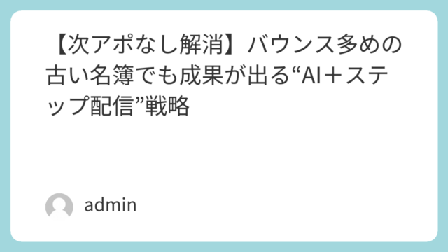 資産運用とリスクマネジメント 【次アポなし解消】バウンス多めの古い名簿でも成果が出る“AI+ステップ配信”戦略