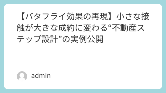 不動産マーケティング戦略 【バタフライ効果の再現】小さな接触が大きな成約に変わる“不動産ステップ設計”の実例公開