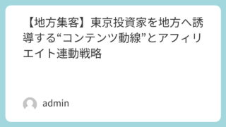 不動産戦略・ROI 【地方集客】東京投資家を地方へ誘導する“コンテンツ動線”とアフィリエイト連動戦略