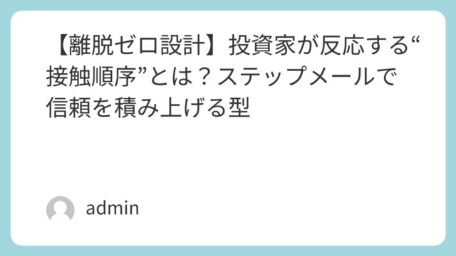 投資家が反応しない原因は「接触順序」にあります。ステップメールで信頼を積み上げ、保留名簿を成果につなげる設計を解説。