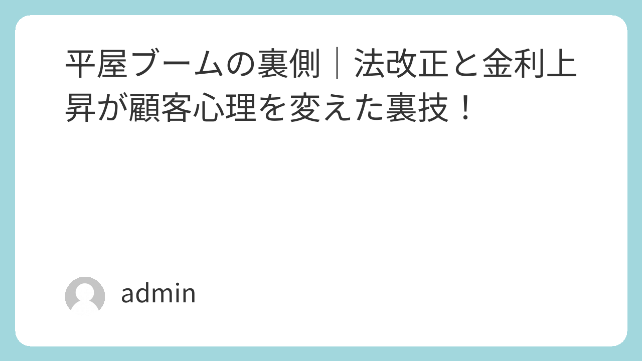 平屋ブームの裏側|法改正と金利上昇が顧客心理を変えた裏技!