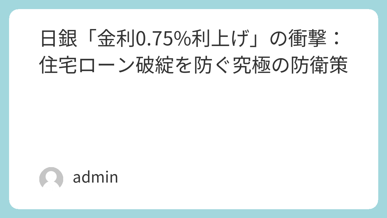 日銀「金利0.75%利上げ」の衝撃:住宅ローン破綻を防ぐ究極の防衛策