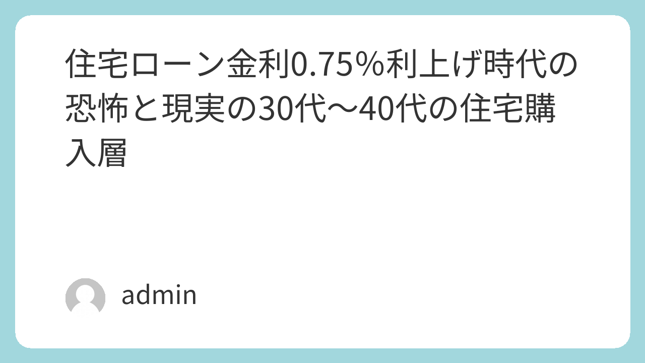住宅ローン金利0.75%利上げ時代の恐怖と現実の30代~40代の住宅購入層