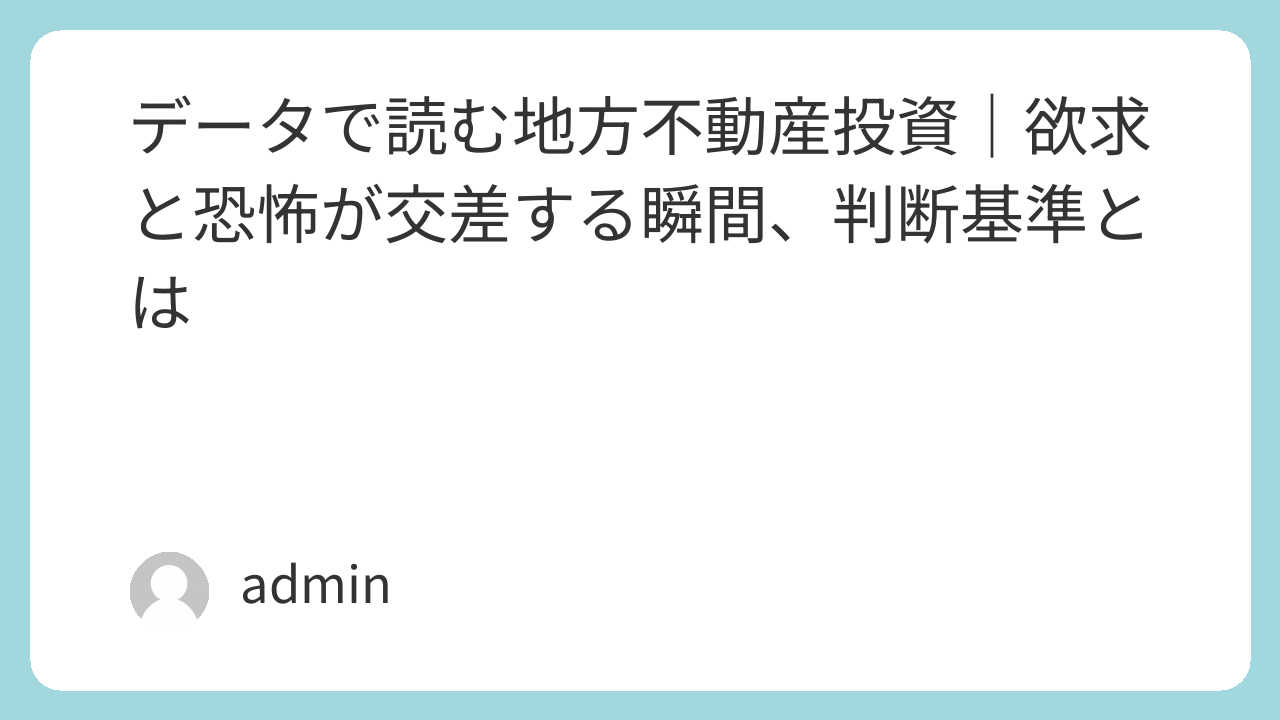 データで読む地方不動産投資|欲求と恐怖が交差する瞬間、判断基準とは