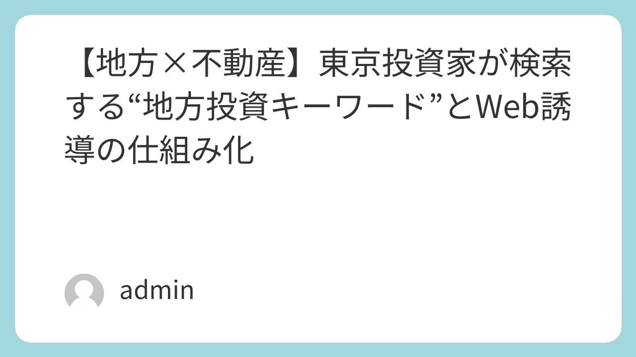 つまり、地方の不動産会社・士業・小規模事業者が「東京の投資家」に向けて適切なSEO設計を行えば、安定的な見込み客獲得の仕組み化が可能になります。