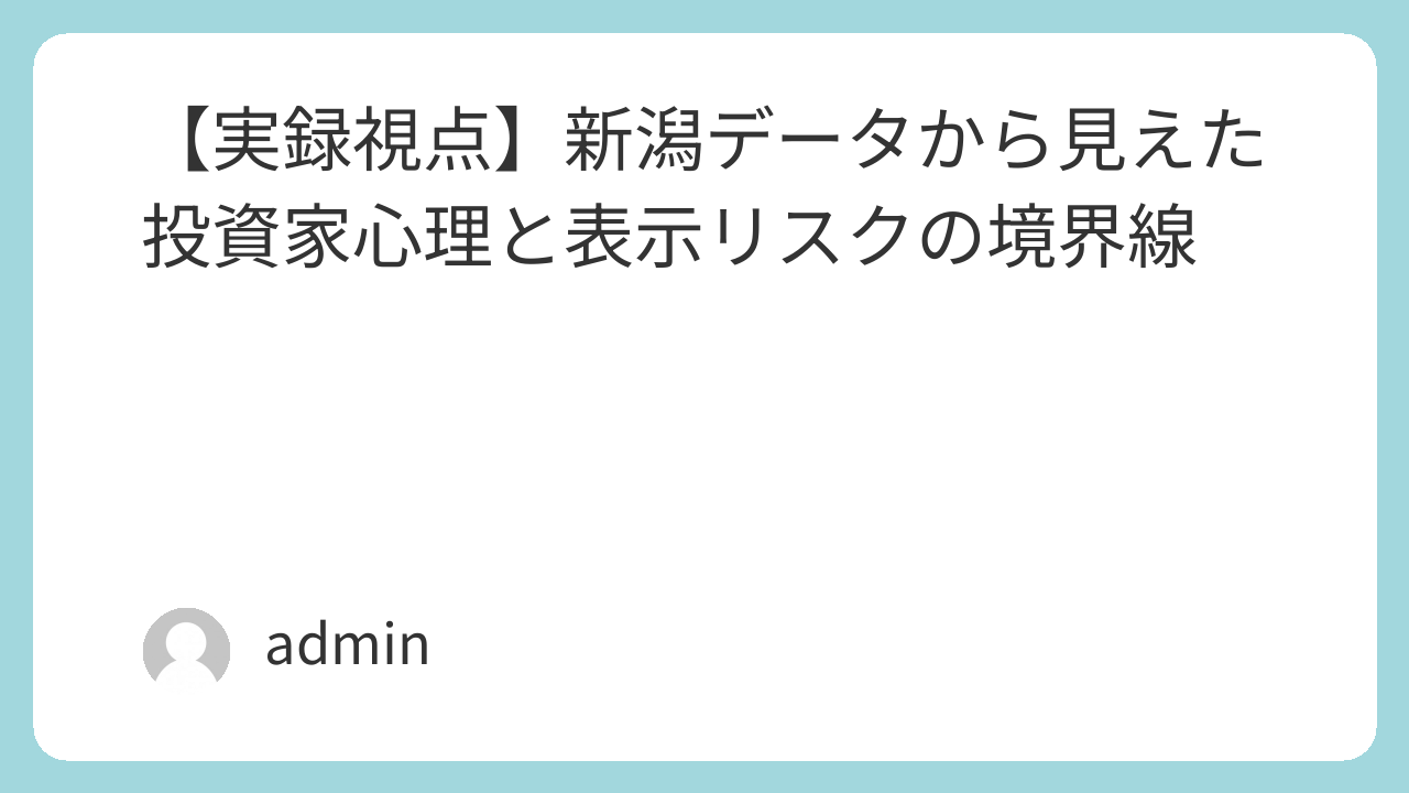 【実録視点】新潟データから見えた投資家心理と表示リスクの境界線