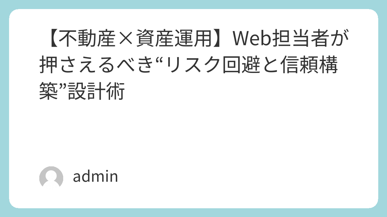 1. 不動産×資産運用マーケで最重要の「信頼構築設計」