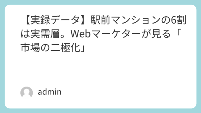 不動産マーケティング戦略 【実録データ】駅前マンションの6割は実需層。Webマーケターが見る「市場の二極化」