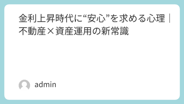 資産運用とリスクマネジメント 金利上昇時代に“安心”を求める心理|不動産×資産運用の新常識