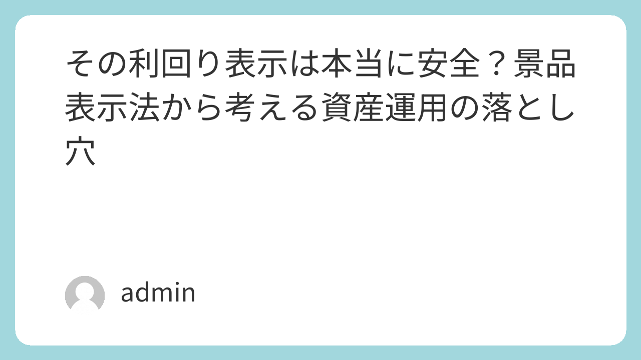その利回り表示は本当に安全?景品表示法から考える資産運用の落とし穴